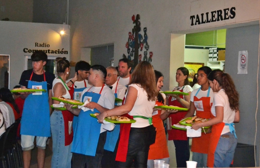 Durante la jornada, las pizzas fueron servidas por los jóvenes del grupo, colaboradores y voluntarios, quienes se sumaron con entusiasmo a la tarea de atención al público.