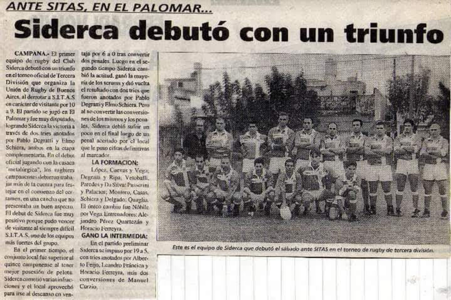 Luego, en el año 1997 el rugby campanense tuvo una mudanza, pasando a ser cobijado por el, en ese entonces, Club Siderca del que también formó parte Alfredo hasta el año 2000, cuando pasó a llamarse Club Ciudad de Campana.
