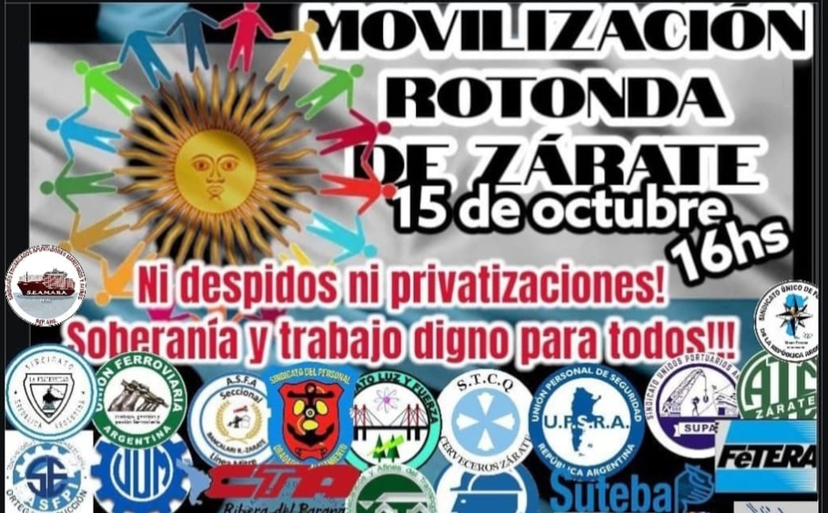 Finalmente, convocaron a todos los trabajadores y trabajadoras, así como a la comunidad en general, a sumarse a una concentración este martes 15 de octubre a las 16 horas en la rotonda de Zárate, “en defensa del trabajo digno, los derechos laborales y la soberanía nacional”.