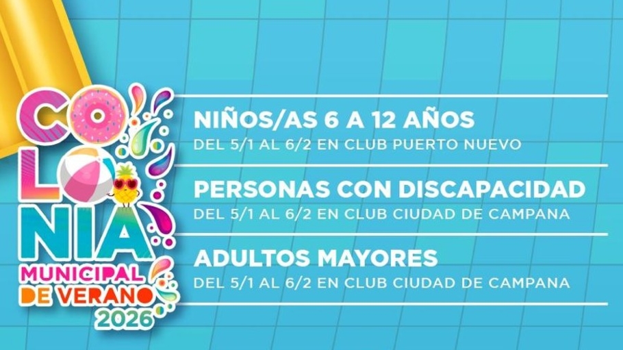 Como ya es tradición, la propuesta está destinada a adultos mayores, personas con discapacidad y chicos de entre 6 y 12 años. Los dos primeros grupos disfrutarán de las actividades en el Club Ciudad de Campana; mientras que, el tercer grupo, concurrirá al Club Puerto Nuevo. Ambas sedes se desarrollarán en el turno mañana desde el 5 de enero al 6 de febrero.
