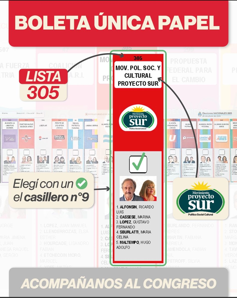 La Lista 305 está integrada por la ex diputada nacional Lilia Marina Cassese (Proyecto Sur), Gustavo López (Forja), la dirigente de Bragado Celina Sburlatti, el presidente de Proyecto Sur Buenos Aires Hugo Maltempo, Julia Larcamón (Forja) y el socialista Martín Canay, entre otros referentes.