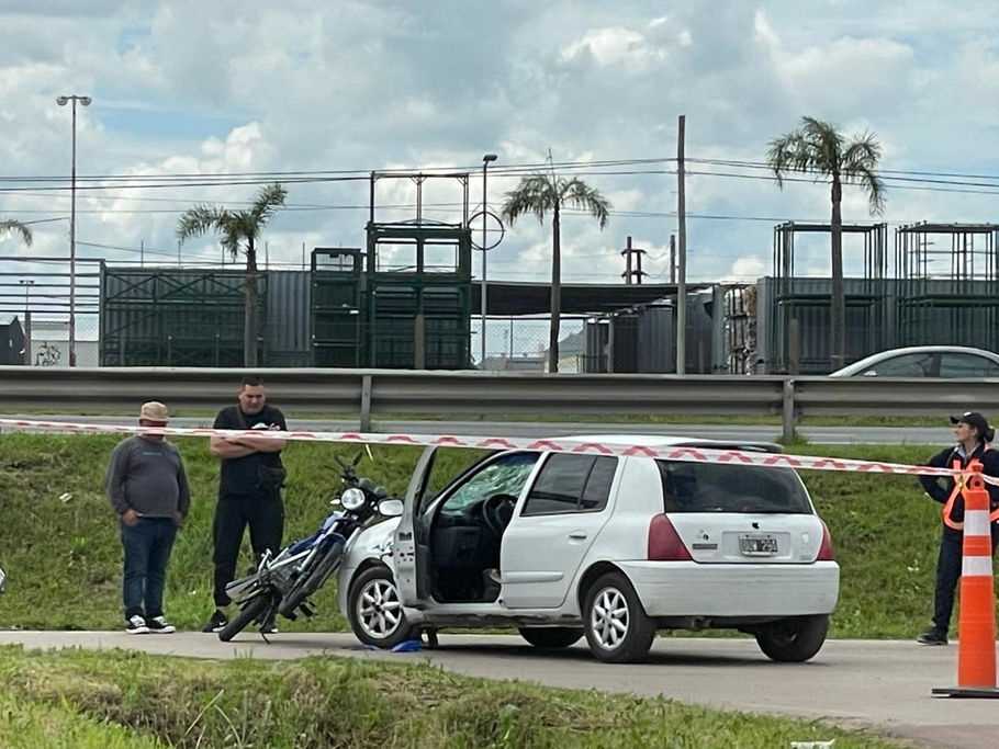 La escena generó complicaciones en el tránsito y llamó la atención de quienes pasaban por la zona, dado que la moto permaneció varios minutos sobre el automóvil hasta realizadas las pericias de rigor.