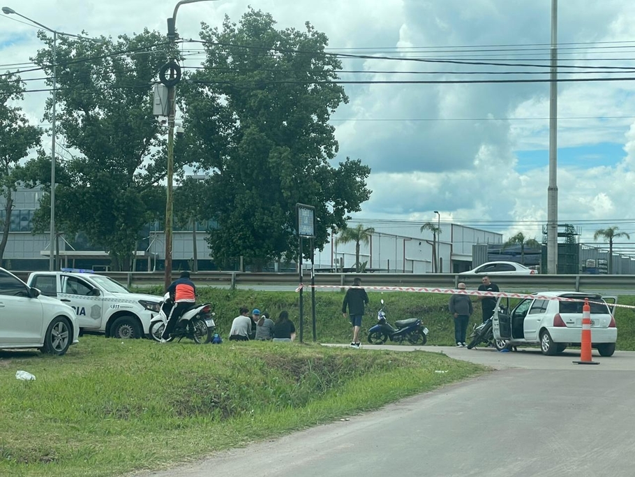 En la tarde del Sábado, en el acceso al barrio Las Campanas, en la intersección de Schinoni y Colectora Sur, se produjo un siniestro vial que involucró a un automóvil Renault Clio y una motocicleta Motomel 150 cc.