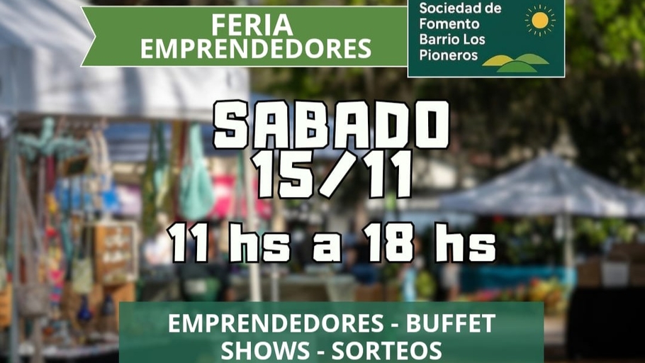 La Sociedad de Fomento del Barrio Los Pioneros invita a toda la comunidad a disfrutar de una nueva edición de la Feria de Emprendedores, que se desarrollará este sábado 15 de 11 a 18 horas en Maffei 566.