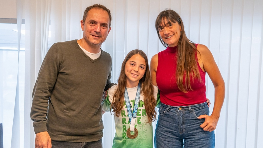 Durante el encuentro, que también contó con la presencia de la secretaria de Inclusión, Educación y Cultura, Elisa Abella, Olivia compartió con el Intendente su experiencia y exhibió con orgullo la medalla obtenida.