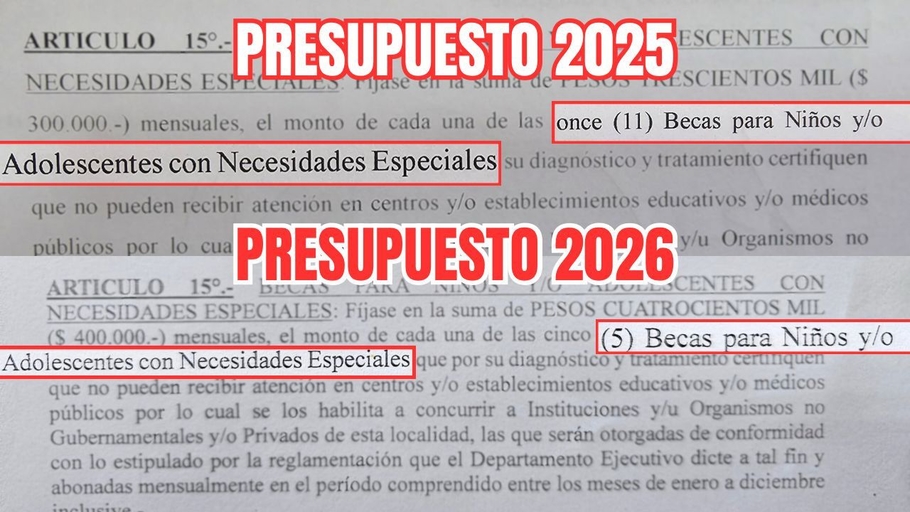 Los concejales del bloque Fuerza Patria criticaron el recorte del Presupuesto Municipal 2026 destinado a las becas para niños y adolescentes con necesidades especiales dependiente de la Secretaría de Cultura, Educación e Inclusión. "Por decisión de los hermanos Abella, las becas se reducen en un 55%. Tal como lo hace el gobierno nacional, el Municipio ataca a uno de los sectores más vulnerables de nuestra sociedad" afirmaron.