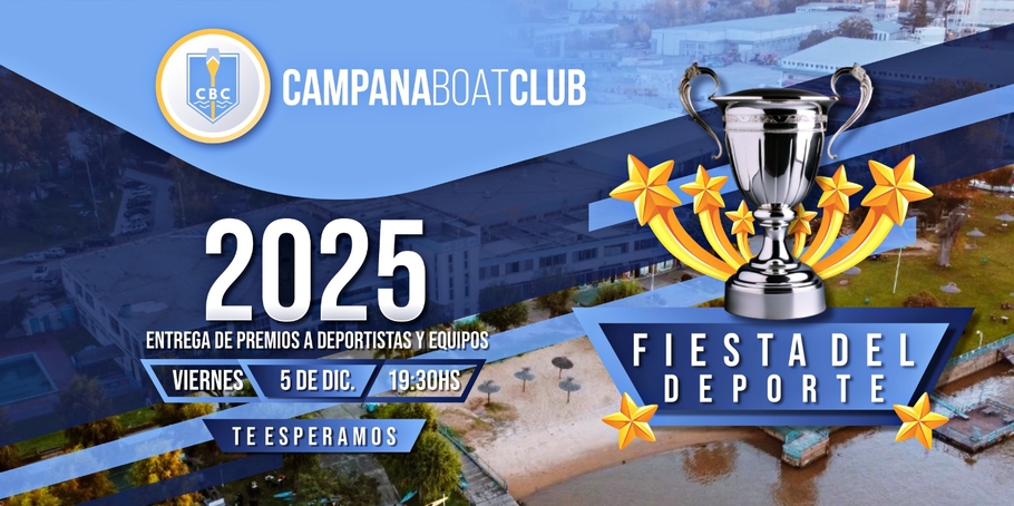 El Campana Boat Club invita a ser parte a todos sus socios de la Fiesta del deporte, en la misma se reconoce el gran año deportivo de la institución en todas sus áreas deportivas. Desde las 19:30 el CBC vuelve a ser local una vez más.