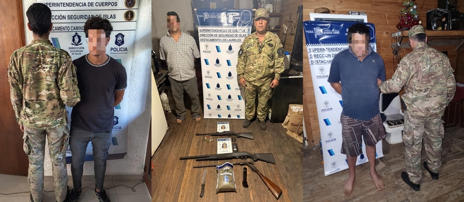 Como resultado de los procedimientos realizados en las últimas horas, la Policía logró detener a tres personas imputadas por homicidio en ocasión de robo, y además aprehender a otros tres individuos por tenencia ilegal de arma de guerra e infracción a la Ley de Drogas.