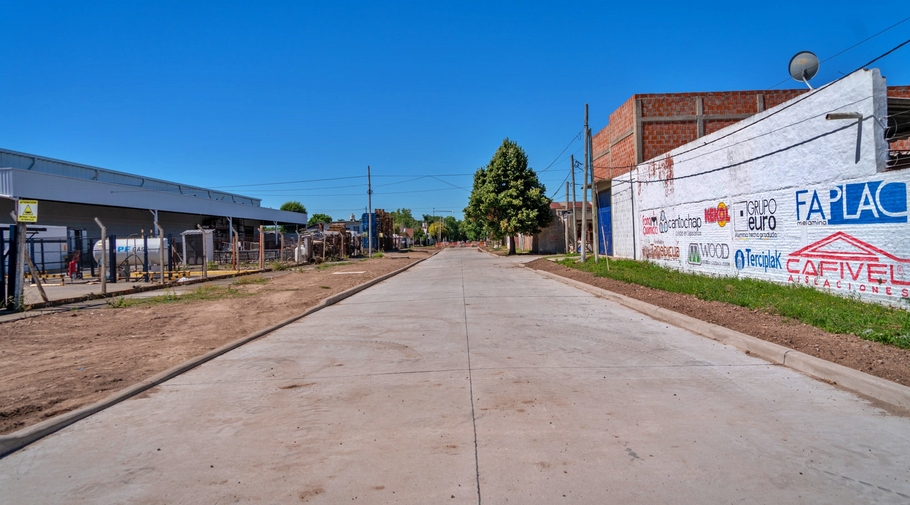 El intendente Abella visitó la zona y anunció la habilitación al tránsito luego del hormigonado de la calzada desde Colectora Sur hasta Chacabuco. Antes de su pavimentación se habían concretado trabajos hidráulicos con la colocación de desagües. Y próximamente se agregarán nuevas luminarias.