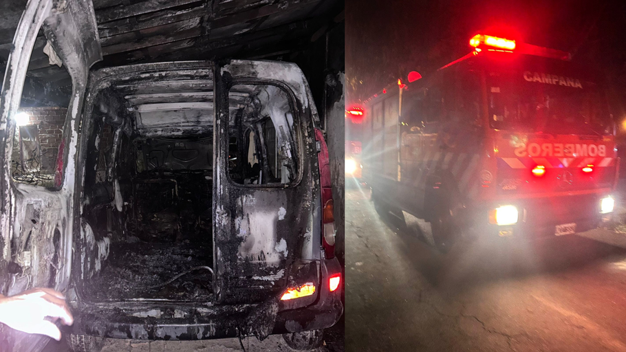 Por motivos que se intentan establecer, una camioneta Renault Kangoo que se encontraba en el interior de la casa se prendió fuego, provocando importantes daños materiales.