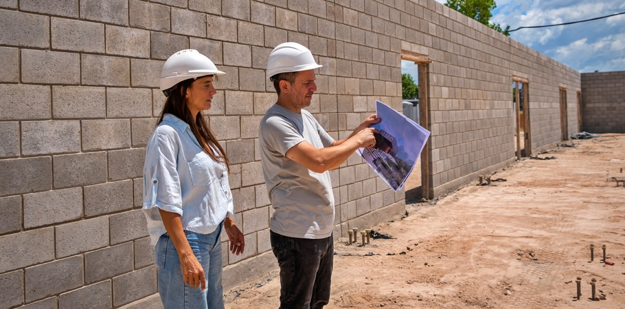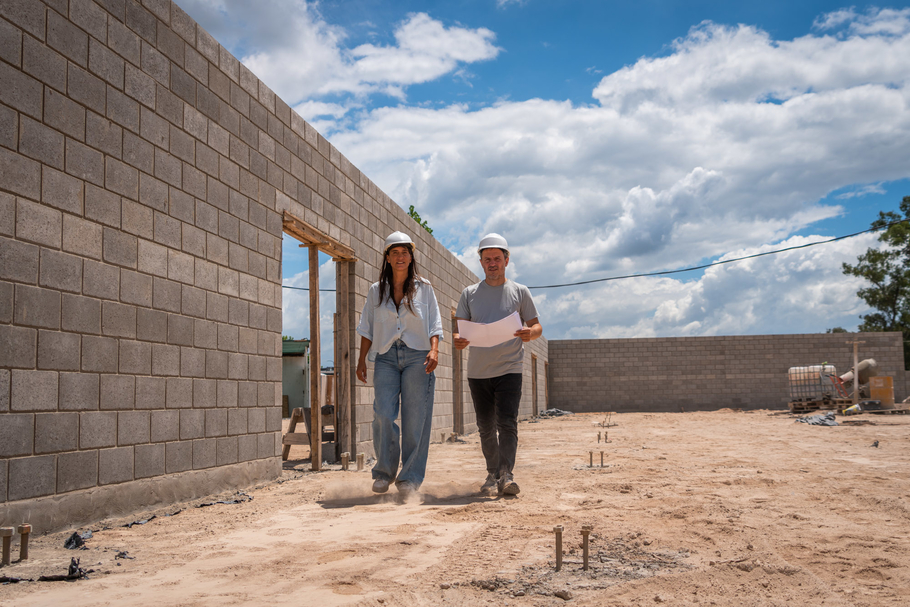 En ese marco, el intendente Sebastián Abella recorrió el predio ubicado en la intersección de avenida 6 de Julio y calle Viola junto a la secretaria de Inclusión, Educación y Cultura, Elisa Abella, donde constató las últimas tareas ejecutadas que incluyeron la mampostería de la nave principal, realizada con bloques de ladrillos de cemento, alcanzando una altura aproximada de tres metros.