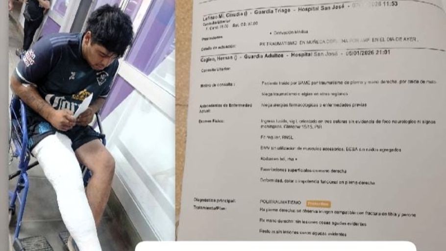 El siniestro se produjo en Dorrego y colectora cuando colisionaron una motocicleta Gilera Smash 110 cc y una camioneta tipo utilitario. Como consecuencia del impacto, el conductor del rodado menor, Sergio Gómez, conocido como “Checho”, sufrió fractura expuesta de tibia y peroné en su pierna derecha. El herido fue trasladado al Hospital Municipal San José, donde permanece internado a la espera de una intervención quirúrgica.