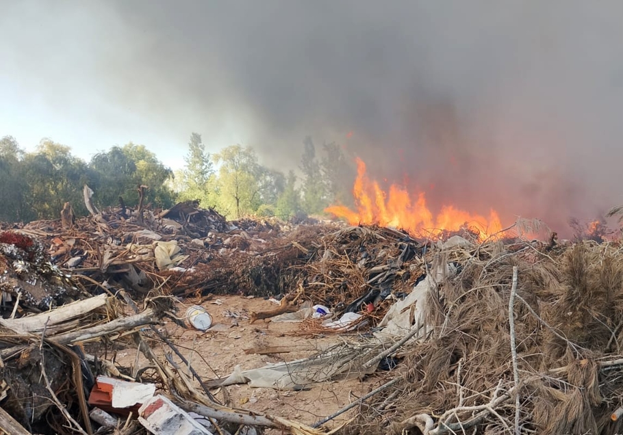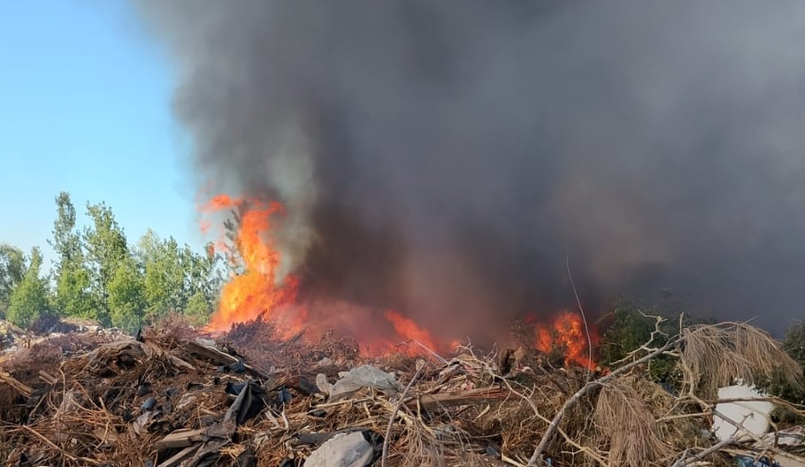 Incendio controlado en un basurero de zona industrial