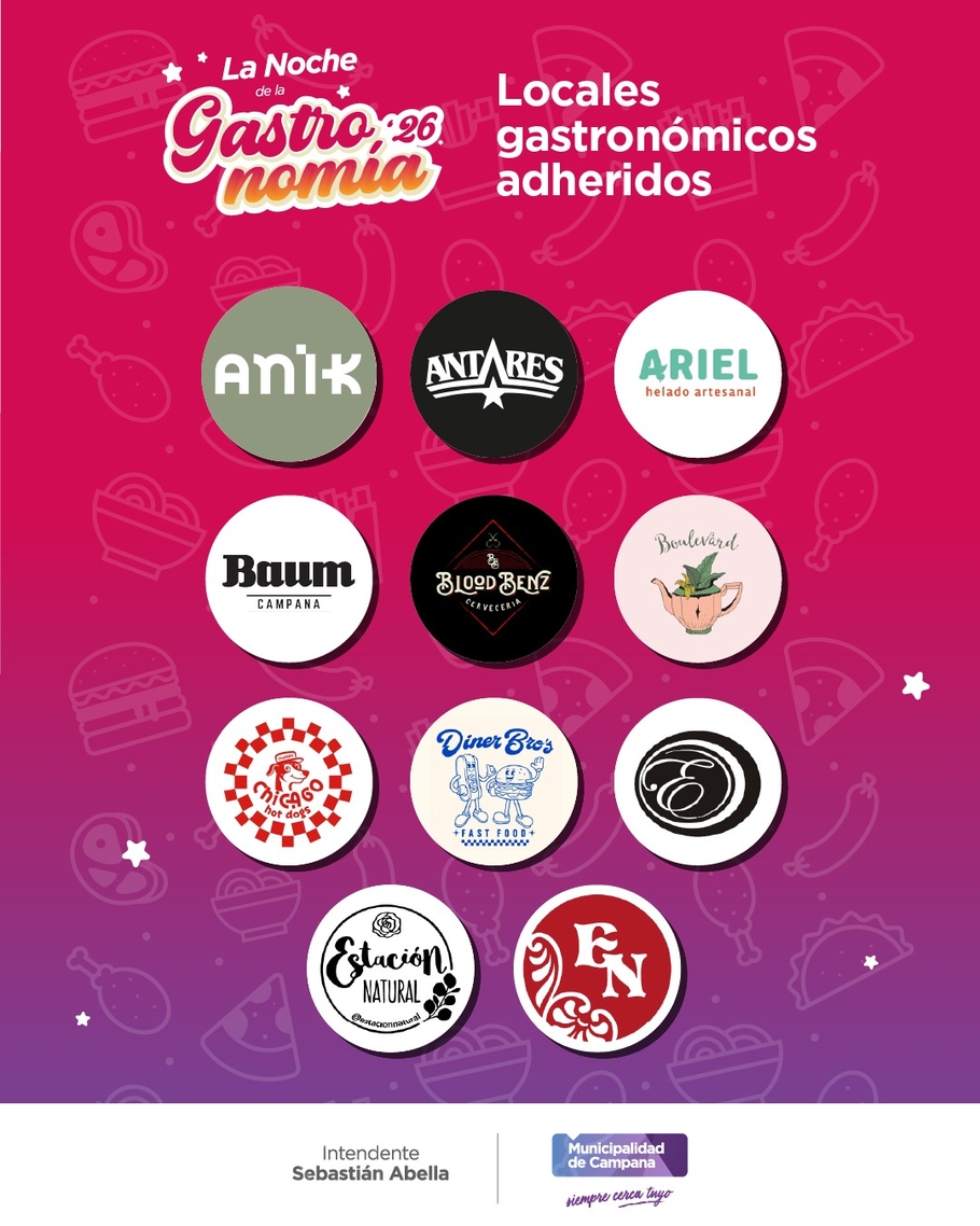 En esta ocasión, los locales adheridos son: Koval Heladería & Café; Estación Natural; Lo del Dona; La Bodega de la Casona; Antares Campana; Anik Campana; Heraldo Pizza; La Catedral - Resto Bar; Chicago hot dogs; Emblema; Boulevard Deli&Café; Pecas Burger; Estilo Nápoles; VIVALENTI; Los Alebrijes; Blood Benz; Heladería Ariel, Otilia, Baum, Diner Bro´s, Palto y Pizzería Popular.