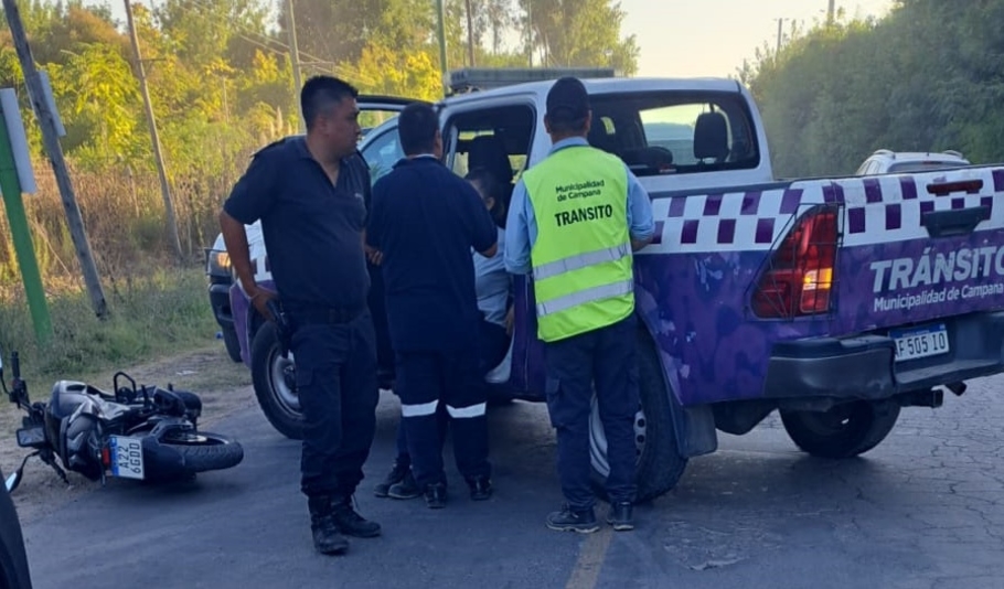 Según testigos, el vehículo municipal intentaba girar a la altura del barrio Lomas de Río Luján, cuando se vio sorprendido por la moto que circulaba en el mismo sentido, produciéndose la colisión.