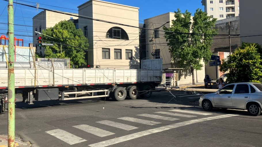 Camión arrancó cables, derribó postes y dañó autos en pleno centro