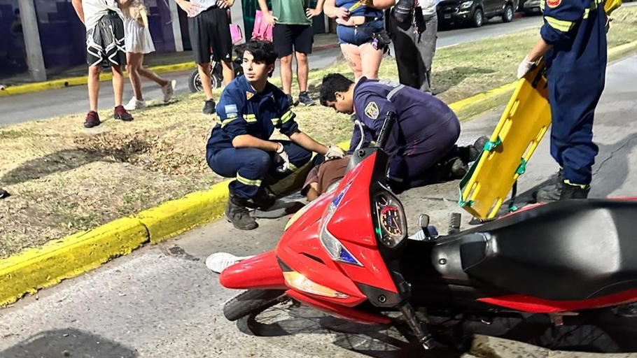 Perdió el control de su moto, chocó contra el cordón y terminó herido