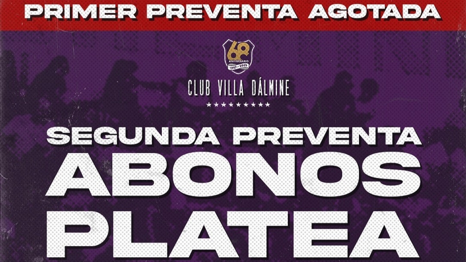 El Club Villa Dálmine confirmó que la primera preventa de abonos a platea para la temporada 2026 se agotó, reflejando una vez más el fuerte respaldo de sus socios e hinchas.