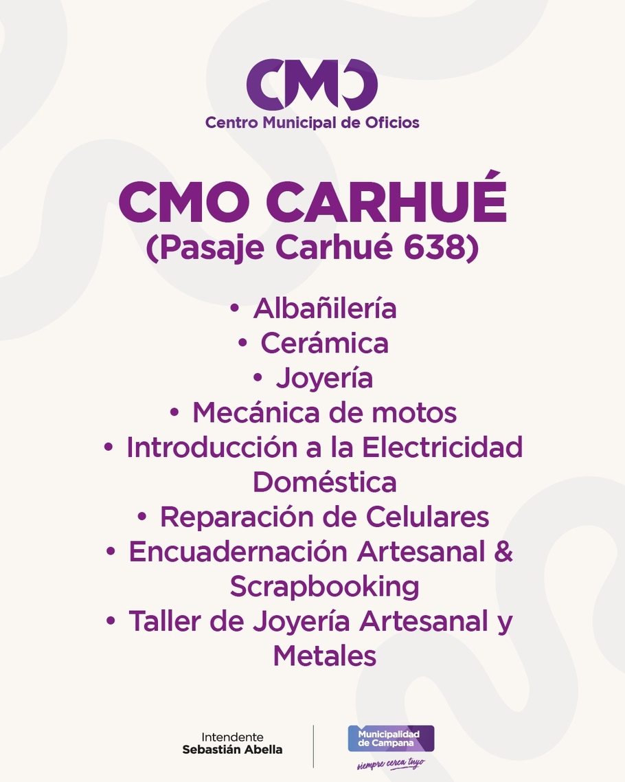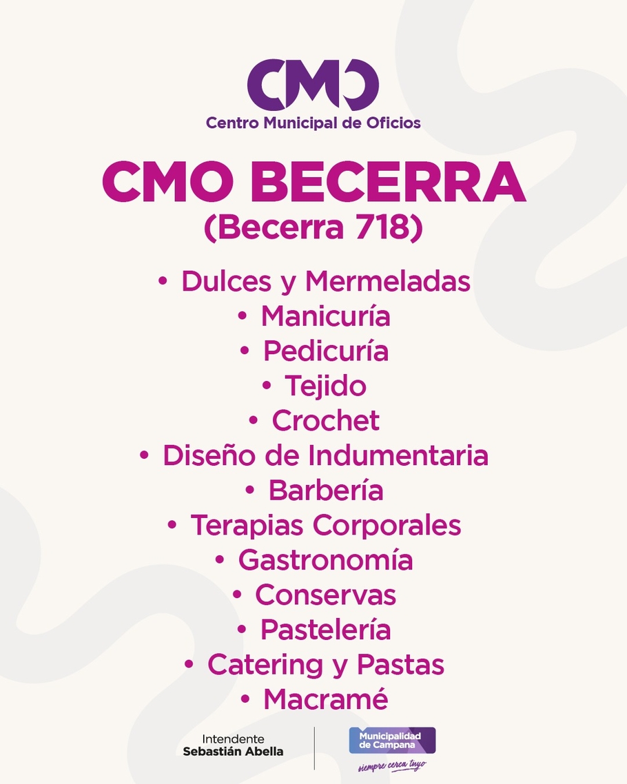 Dando continuidad a las acciones para fortalecer la capacitación laboral y brindar más herramientas de desarrollo personal a los vecinos, el Municipio lanza una nueva inscripción a los cursos gratuitos del Centro Municipal de Oficios (CMO).