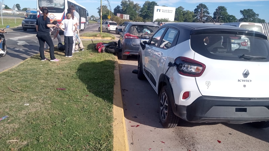 Un accidente se registró en la tarde de ayer, en Colectora Sur, en un momento de alta circulación, cuando el sector de detención frente a la Escuela Técnica Roberto Rocca se encontraba ocupado por vehículos que aguardaban el fin del horario escolar.