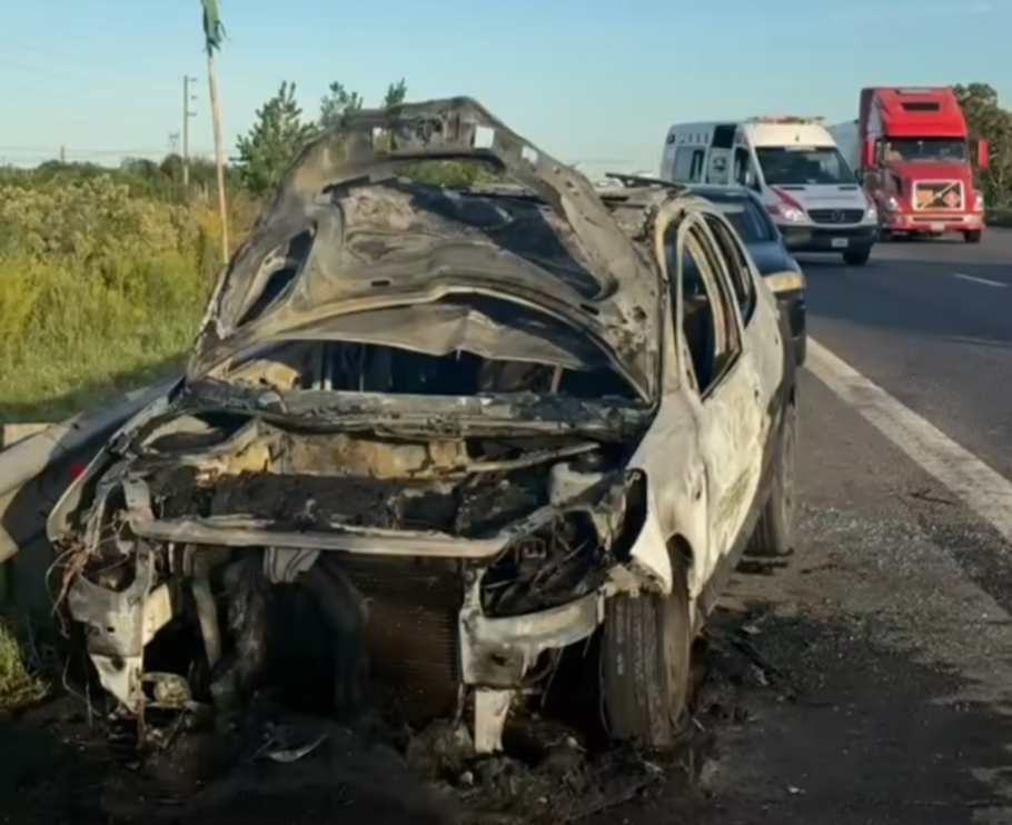 Un automóvil sufrió pérdidas totales tras prenderse fuego en plena traza nacional, lo que obligó a un operativo de emergencia para controlar las llamas y organizar el intenso tránsito de la zona.