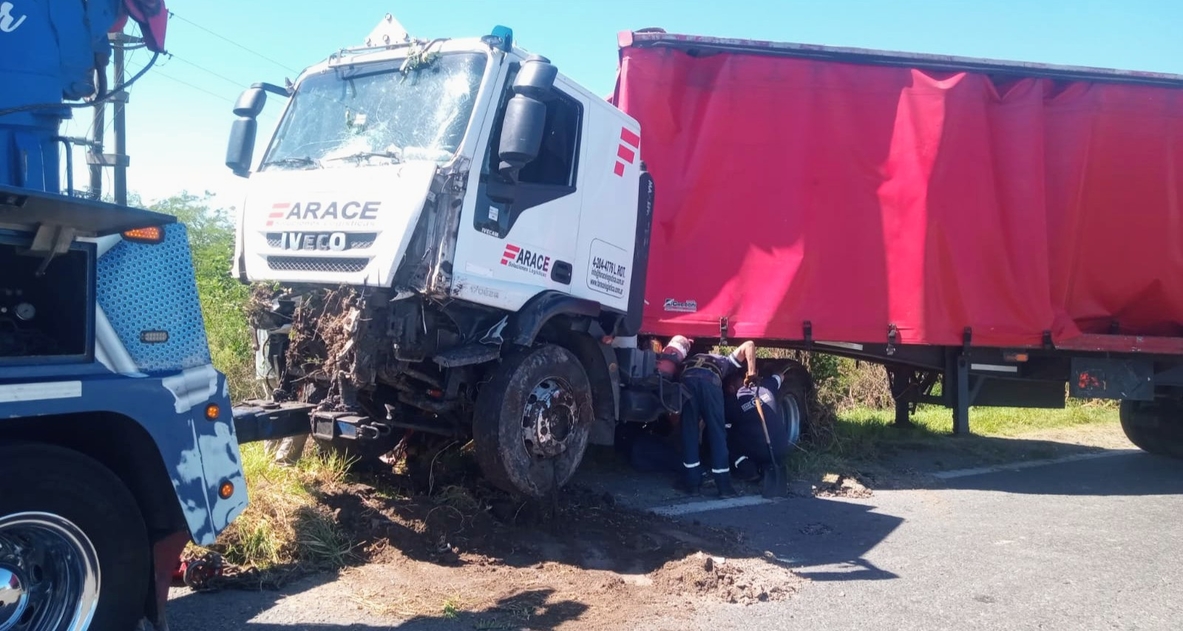 Un camión con acoplado de gran porte protagonizó un despiste en la Ruta Panamericana, mano a provincia, a la altura de la subida a Ruta 6, lo que obligó a desplegar un importante operativo para su remoción.