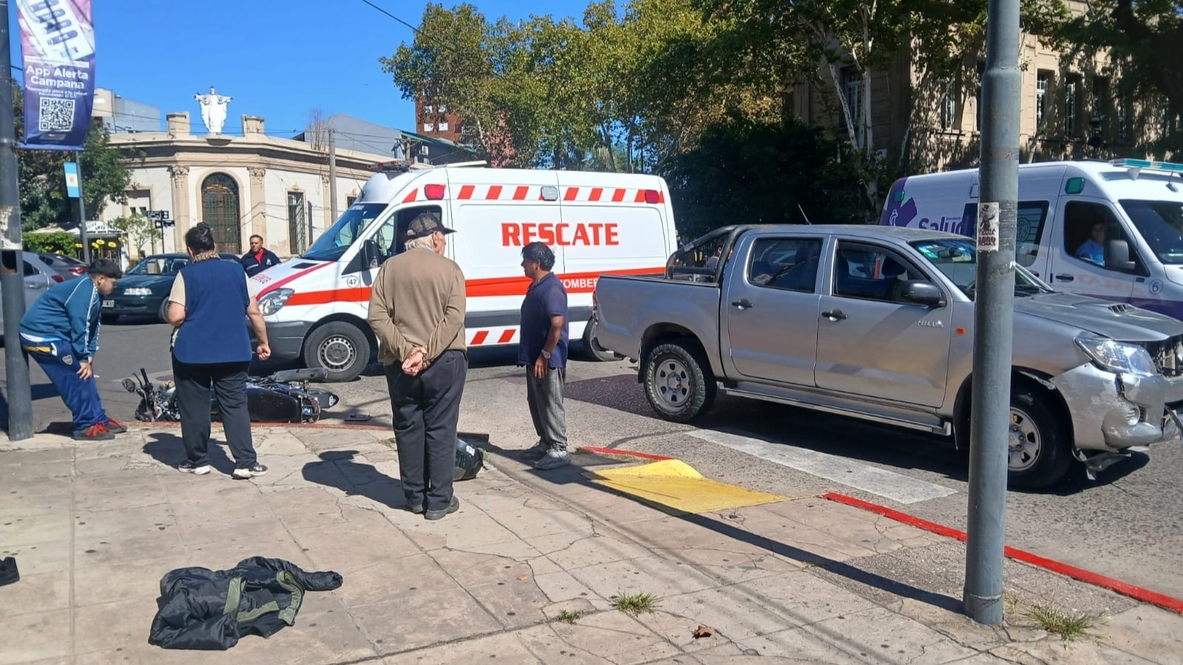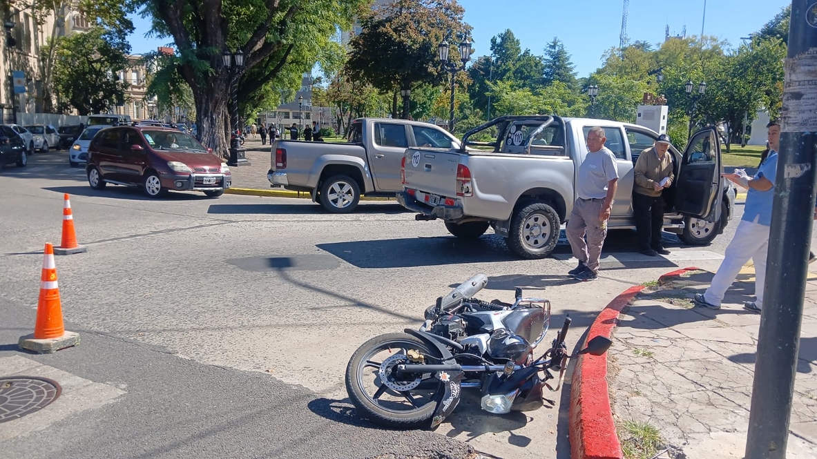 Horas más tarde, cerca de las 11, se registró un segundo accidente en pleno centro, en la intersección de 9 de Julio y avenida Varela, junto a la Plaza Eduardo Costa. Allí, una motocicleta en la que circulaba una pareja colisionó contra una camioneta una Toyota Hilux conducida por un adulto mayor.