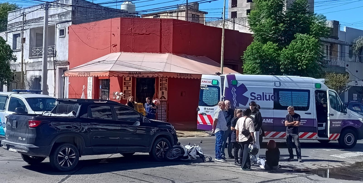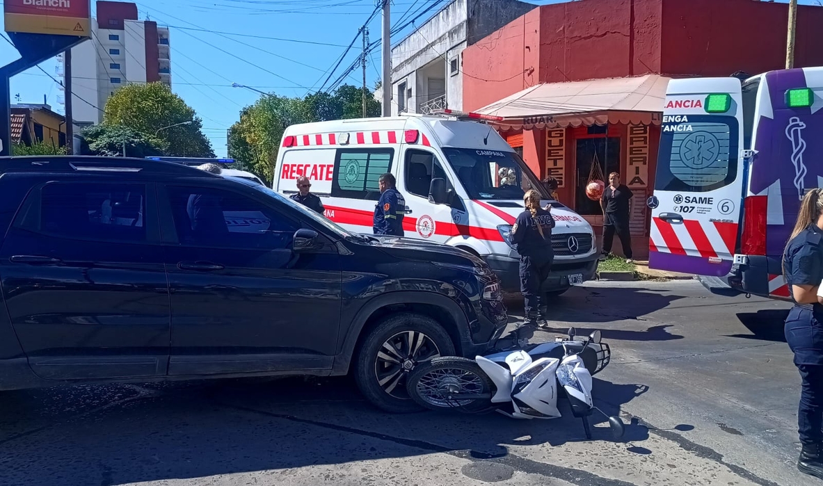 El siniestro ocurrió cuando una camioneta Fiat Toro colisionó contra una motocicleta, la cual quedó prácticamente atrapada debajo del vehículo mayor. Las ocupantes del rodado menor debieron ser hospitalizadas tras recibir asistencia del personal del SAME en el lugar.