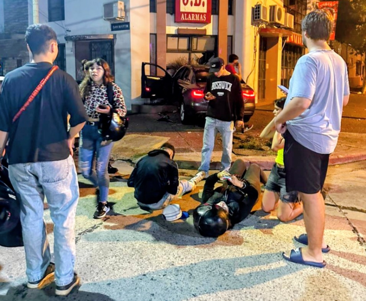 Tras una maniobra, el auto chocó a los motociclistas quienes salieron despedidos del menor rodado.