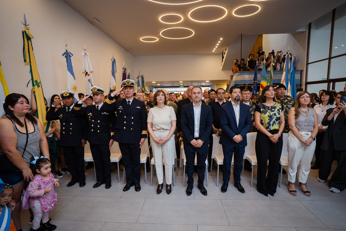 Además de los Veteranos de Guerra y del intendente y Elisa Abella también estuvieron presentes el Jefe de Gabinete, Abel Sánchez Negrette; la Presidenta del Honorable Concejo Deliberante, Karina Sala; y la Presidenta del Consejo Escolar, Cecilia Paternoste; junto a representantes de las Fuerzas de Seguridad; banderas de los cinco establecimientos educativos que llevan nombres alusivos a la Guerra de Malvinas; y un gran número de vecinos.