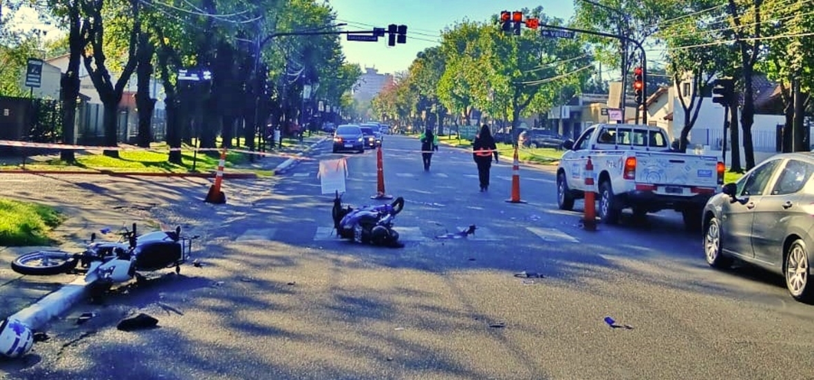 El violento accidente de tránsito entre dos motociclistas se registró este viernes alrededor de las 6:20 de la mañana en la intersección de avenida Mitre y la calle Verdi, en cercanías del cruce con Catamarca, donde funciona un semáforo. Por causas que aún se intentan establecer, ambos rodados colisionaron con fuerza en el lugar.