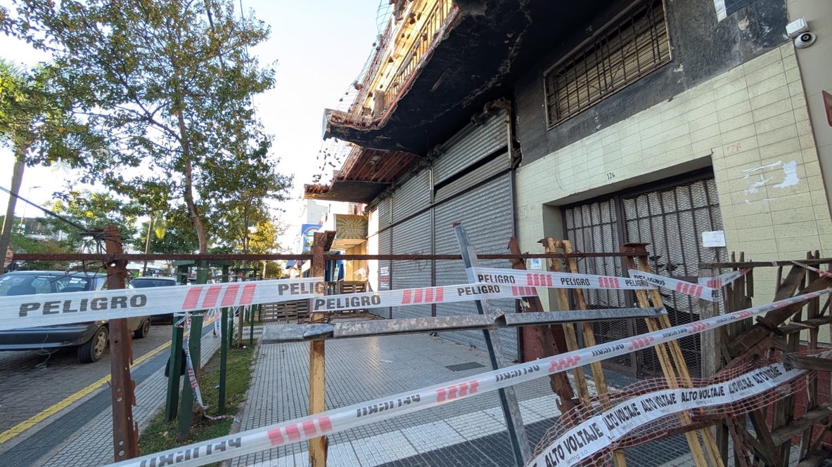 mantener clausurada y bloqueada la vereda peatonal desde principios de año. El primer aviso de este inmueble se dio a mediados de enero —unos quince días antes del grave accidente de la pizzería— cuando el desprendimiento de parte de un balcón en plena madrugada forzó la intervención de Defensa Civil y la colocación del vallado preventivo.
