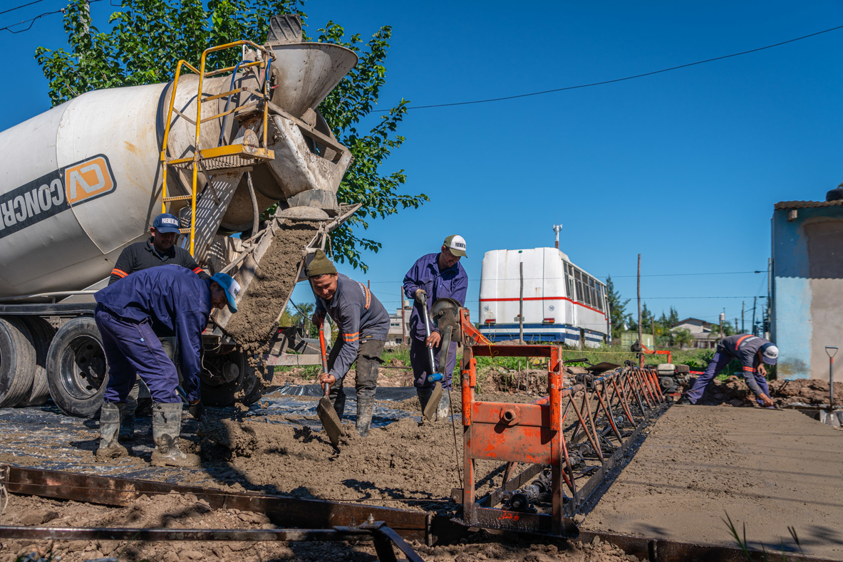 Se puso en marcha la pavimentación con hormigón de nuevas calles del barrio.