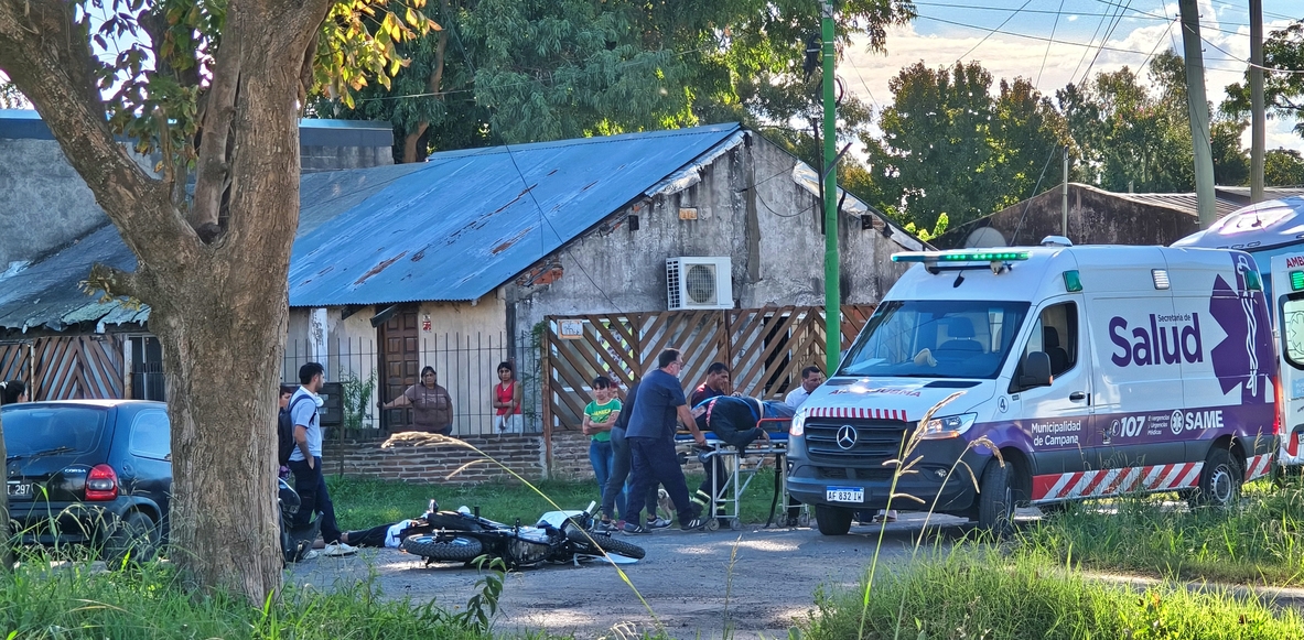 La esquina de Villegas y Castelli, fue escenario de un impactante accidente vial que dejó como saldo a dos personas con heridas de diversa consideración. El hecho se produjo cuando una motocicleta colisionó violentamente contra un Chevrolet Corsa. El impacto fue de tal magnitud que ambos ocupantes del rodado menor salieron despedidos, quedando tendidos sobre la cinta asfáltica con evidentes signos de dolor y dificultades para movilizarse.