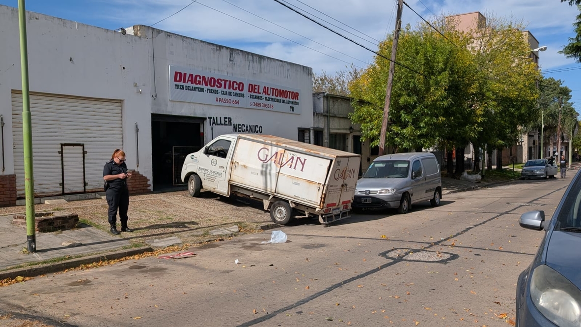 De acuerdo a testigos, el vehículo se encontraba sobre la vereda, frente a un taller mecánico de la zona, cuando al intentar ser maniobrado se desplazó hacia atrás y terminó embistiendo a la moto que transitaba por calle Paso.