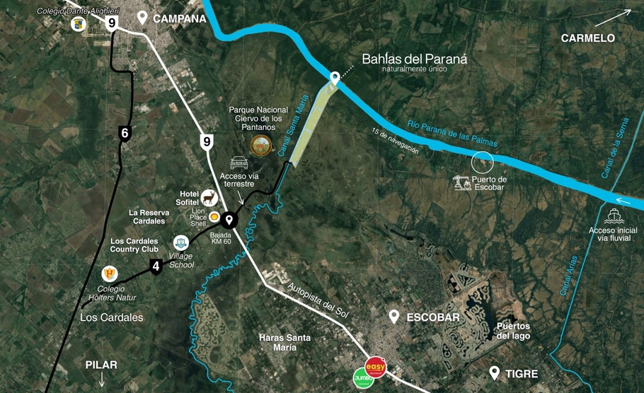 El cuestionado emprendimiento inmobiliario está ubicado en el predio sección islas de Campana (Partido 314), Sección 1, Fracción 6, lindero al Canal Santa María, al Parque Nacional Cierto de los Pantanos y con frente al Río Paraná de las Palmas.