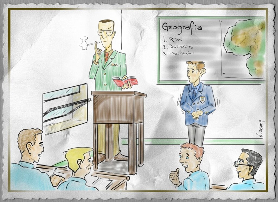 Dentro de ese grupo, uno de los que más se imponía era el profesor de Geografía. Alto, de lentes de marco delgado, al ingresar al aula inspiraba respeto… y miedo en quienes no habían estudiado, o al menos repasado el tema del día.